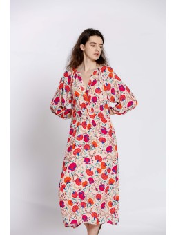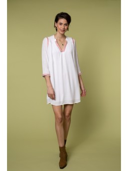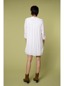 La robe SUZIE est l'incarnation de l'élégance grâce à son col V flatteur, ses broderies et ses manches mi-longues.
