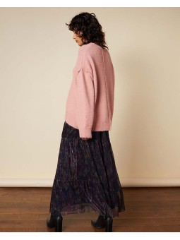 HELEANA est une jupe longue à taille haute élastiquée et dotée d'une ceinture amovible. Elle est évasée pour un look féminin et élégant.