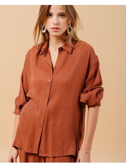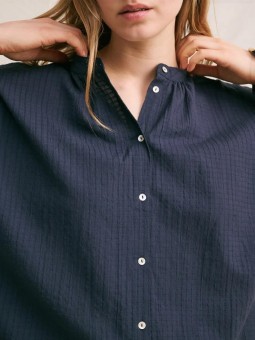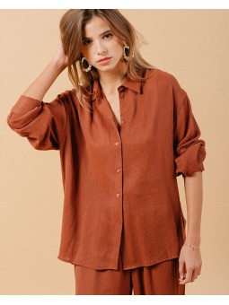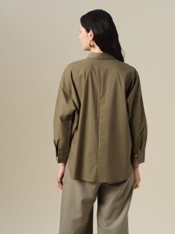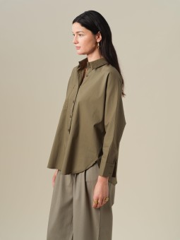 Chemise légère oversize à col en pointe. Patte de boutonnage devant. Emmanchures tombantes. Manches longues à poignets boutonnés. Ourlet droit. Dos plus long que devant. Style décontracté.