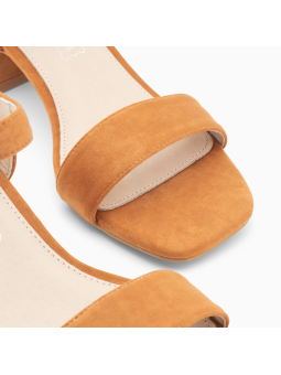 Ces sandales en suédine effet velours peau de pêche couleur ocre sont parfaites pour compléter avec élégance vos tenues de cérémonie. Une bride de cheville réglable, une fermeture à boucle dorée, un bout carré et un talon bloc donneront une touche d'élégance à votre tenue. Avec ces chaussures,...