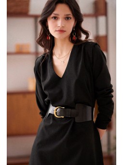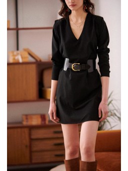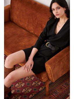 Robe courte à col classique, à manches longues et à patte de boutonnage au milieu devant. Découpée à la taille avec 4 plis sur le devant, elle est dotée de poches italiennes et d'un empiècement dos avec plis ronds dans le dos et fronces à la taille dans le haut du dos.