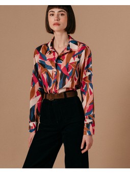 Robe courte dans un imprimé exclusif G&M. Encolure ronde. Manches courtes. Ouverture dos avec un bouton. Détail de noeud sur le devant de la taille. Ouverture au côté avec un zip.