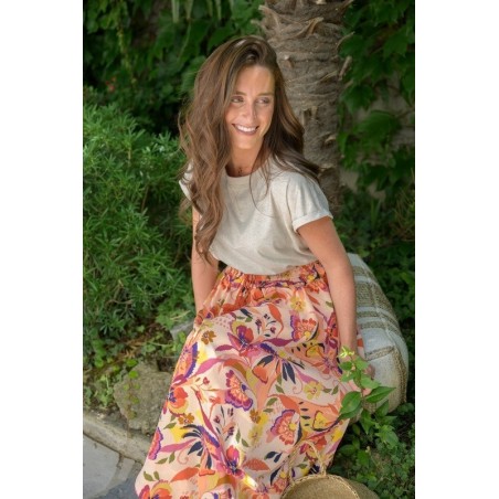 Ce tee-shirt revisite l'essentiel avec une maille originale et un tombé impeccable. Sa base écru est enrichie de mouchetures multicolores qui lui donnent un aspect chiné unique et très créateur.