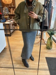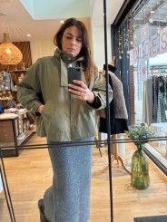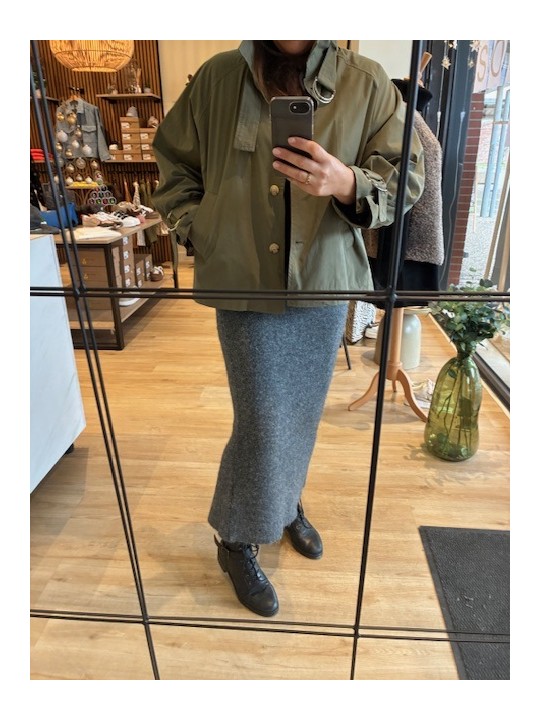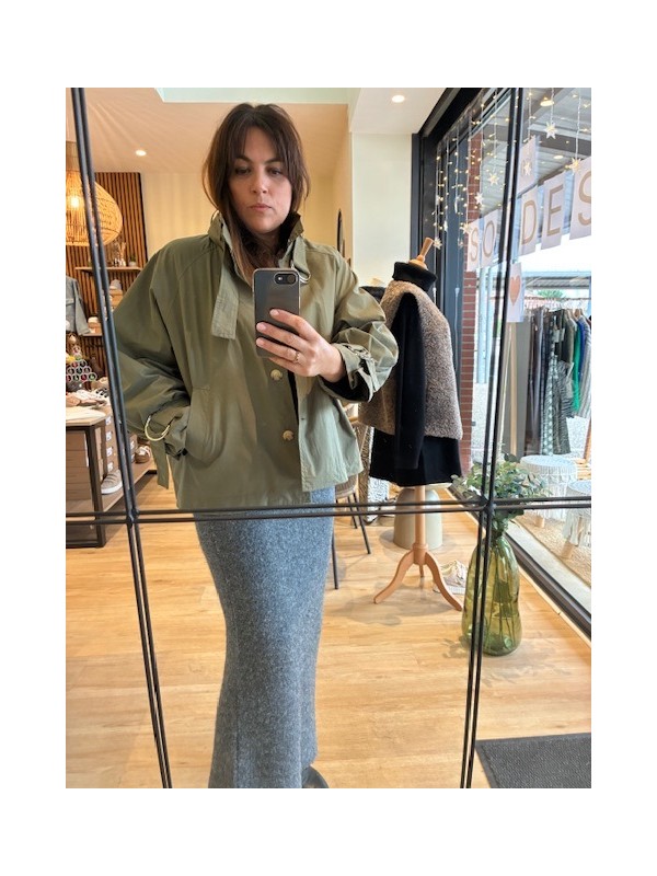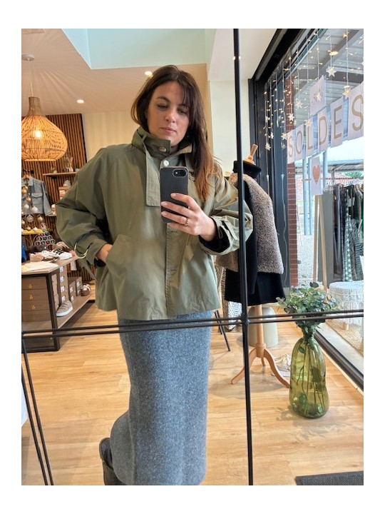 Adoptez une allure moderne et structurée avec notre parka courte en coloris kaki. Sa coupe oversize et ses manches volumineuses apportent une touche résolument contemporaine à votre vestiaire de mi-saison.