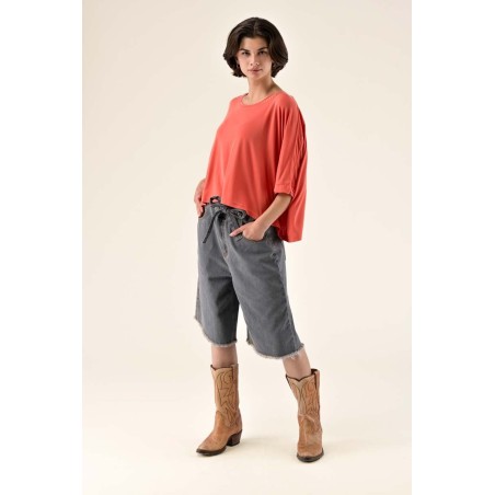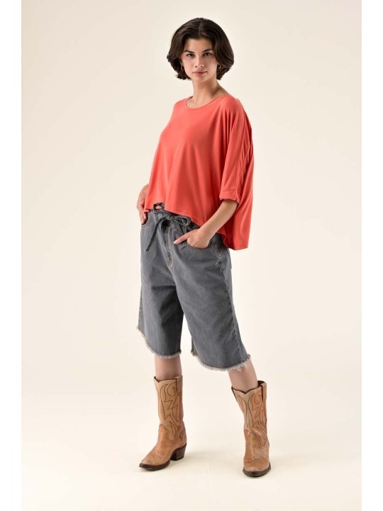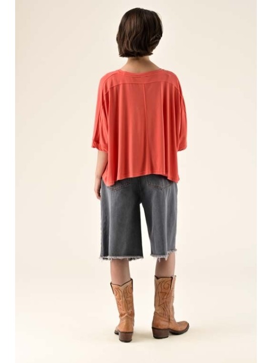 T-shirt Oversize Corail avec Détail Brodé Artisanal