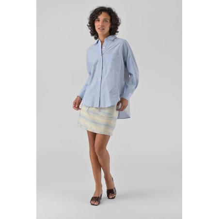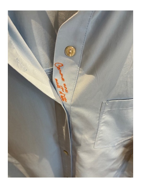 Chemise "Boyfriend" LOLA Broderie Message – Bleu ciel