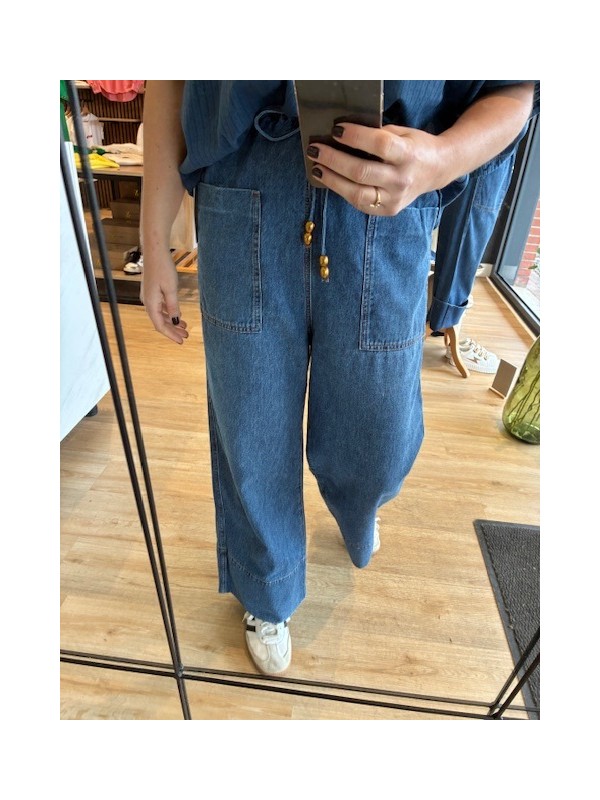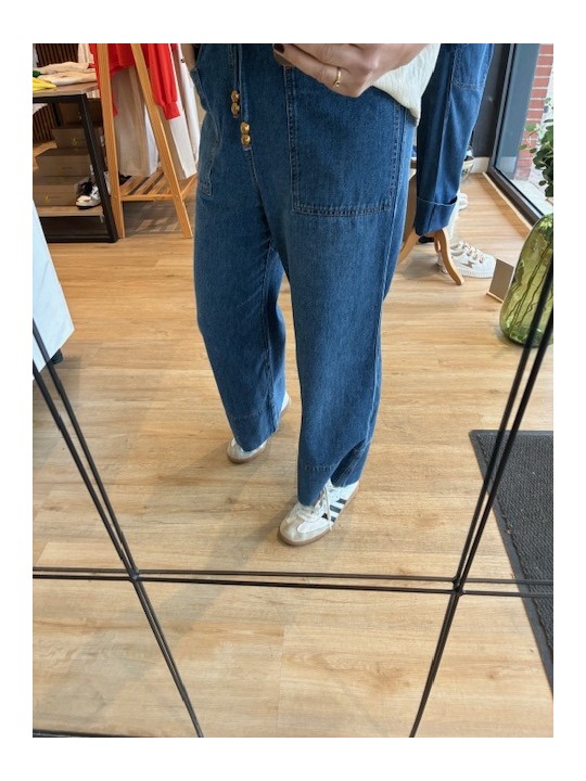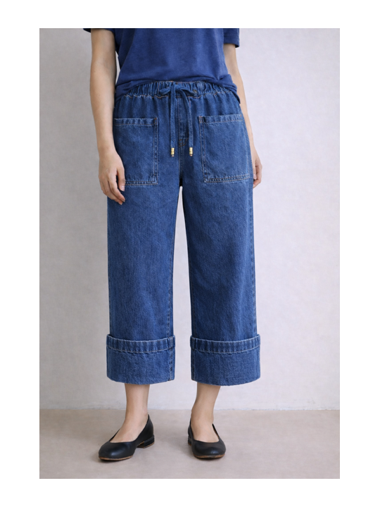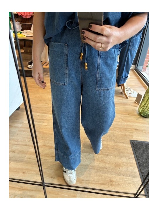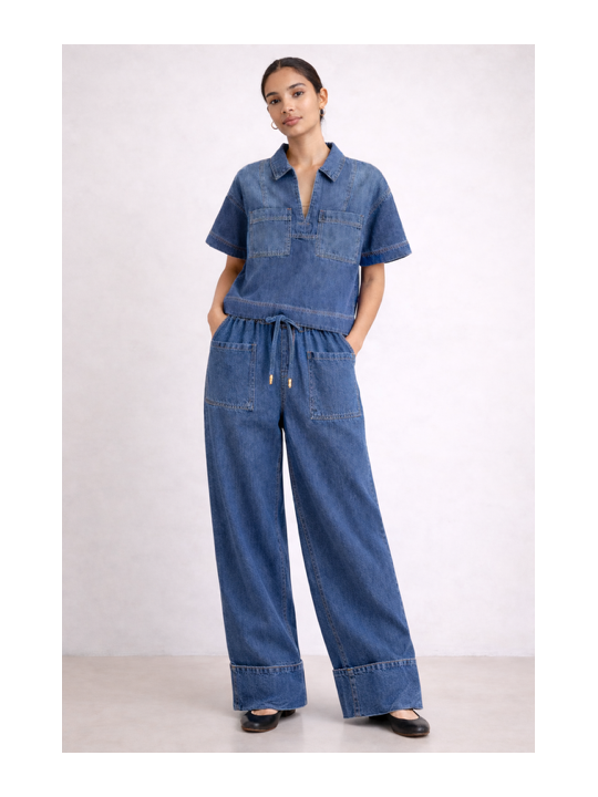 Points forts : Jambes larges, taille ajustable et matière agréable.