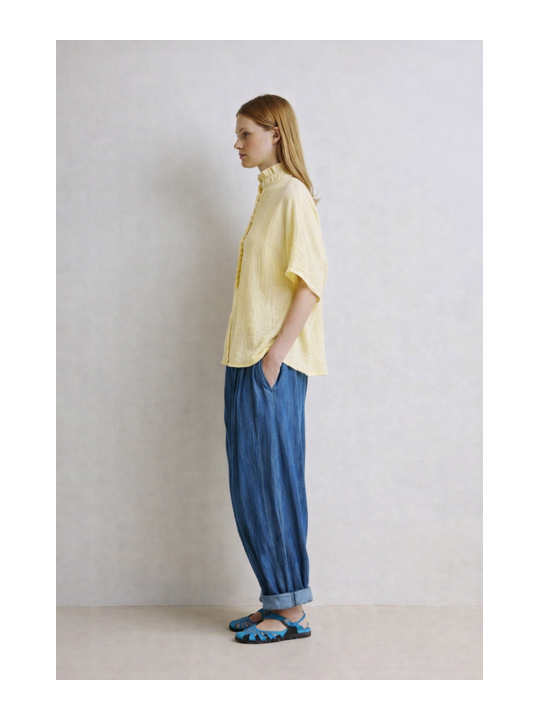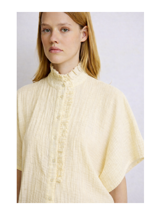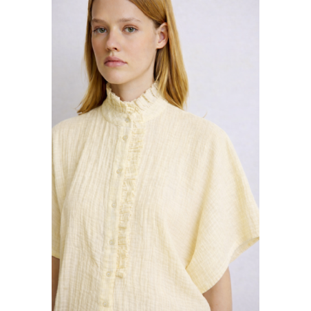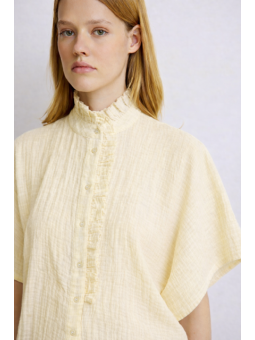 Laissez-vous séduire par la chemisette Natasha, une pièce qui joue la carte de la délicatesse. Son col et sa boutonnière s’ornent de jolis "froufrous" fantaisie pour un look résolument romantique. On adore le contraste entre ses détails travaillés et sa coupe oversize, qui lui apporte une allure moderne et aérienne.