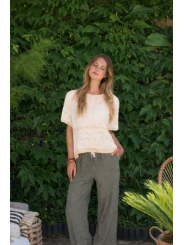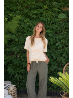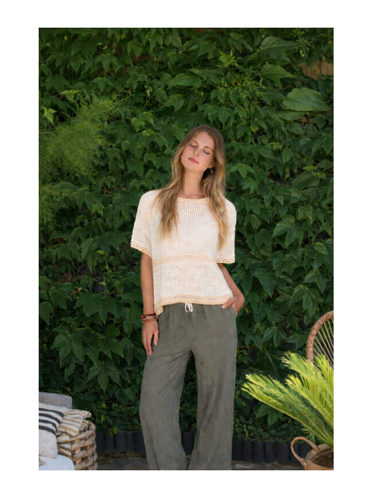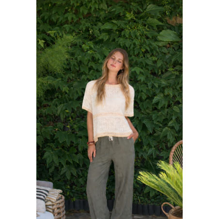Le top Océane de Rue Mazarine est la pièce de mi-saison indispensable à votre garde-robe. Conçu dans une maille douce et respirante, il se distingue par un travail de tricotage varié, mêlant points ajourés et détails graphiques.