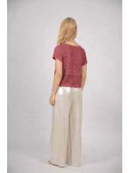 • Finitions raffinées : Le bas du top ainsi que les manches arborent des bordures festonnées (en dents de scie) pour une touche féminine et artisanale.