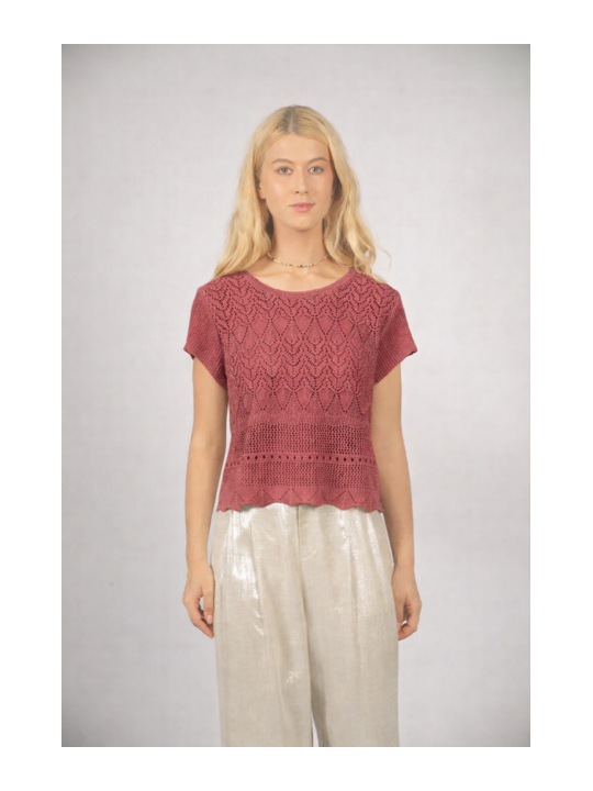 Top en maille ajourée - Vieux Rose - See U Soon