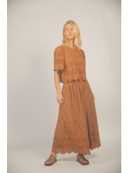 Apportez une touche de poésie et de caractère à votre vestiaire d'été avec cette magnifique jupe longue signée See U Soon. Sa teinte "Tabac", chaude et intemporelle, sublime toutes les carnations et s’adapte aussi bien à une balade en ville qu’à une escapade ensoleillée.
