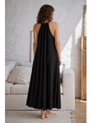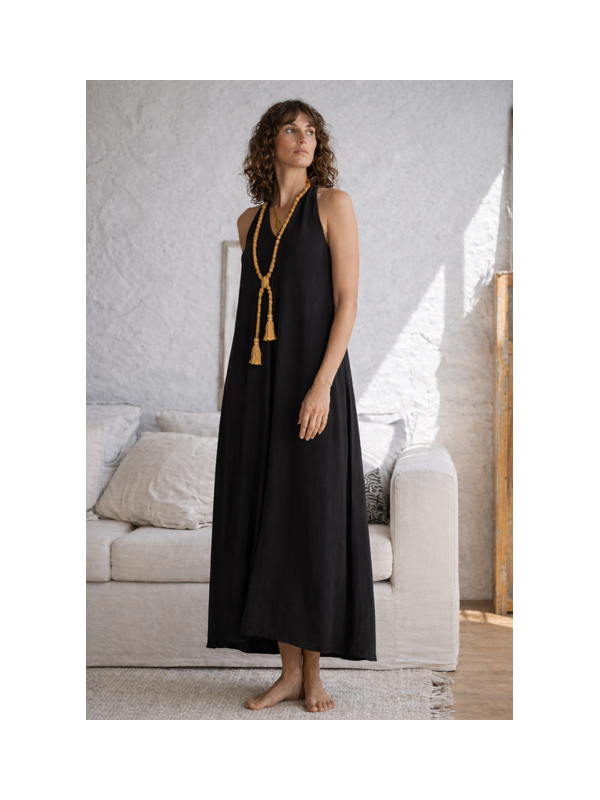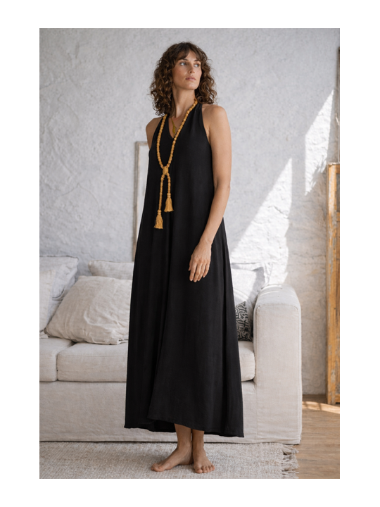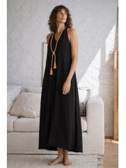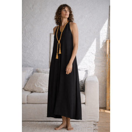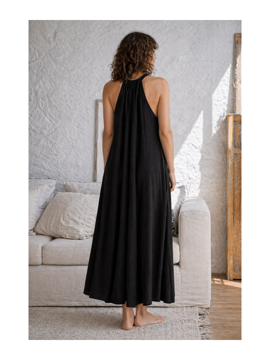 La robe LUXIA est l'incarnation d'un chic sans effort. Avec sa coupe trapèze magistrale et son noir profond, elle impose une silhouette à la fois moderne et intemporelle. C’est la pièce maîtresse pour celles qui recherchent une élégance sobre mais percutante.