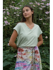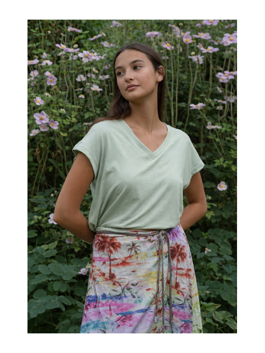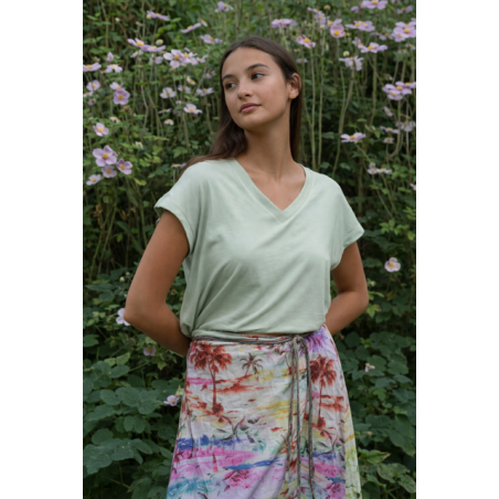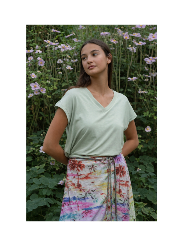 Le tee-shirt IVORY est la pièce maîtresse d'un vestiaire de saison réussi. Alliant simplicité et finitions soignées, il apporte une touche de fraîcheur immédiate à toutes vos tenues grâce à son coloris vert amande délicat.