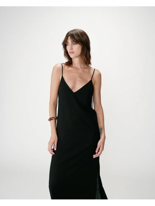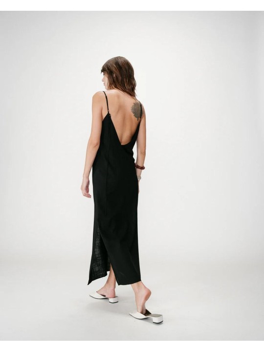 La robe WENDRA est l'alliée de vos journées ensoleillées. Avec sa coupe évasée et son mélange lin-viscose, elle mise sur une allure aérienne. Le détail qui fait la différence ? Son jeu de décolletés en V et son nœud gracieux au dos qui signent un look travaillé sans effort.